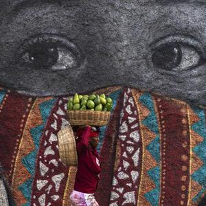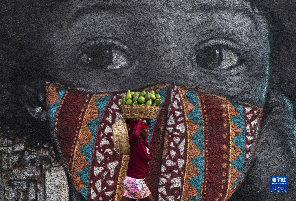 8月24日,一名女子頭頂水果走在海地太子港街頭。
