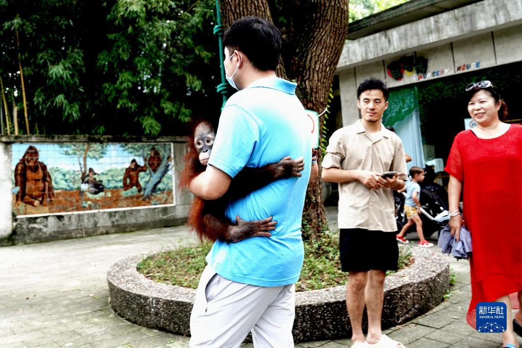 8月28日,保育員帶著(zhù)“黑妞”走出育嬰房引起游客關(guān)注。