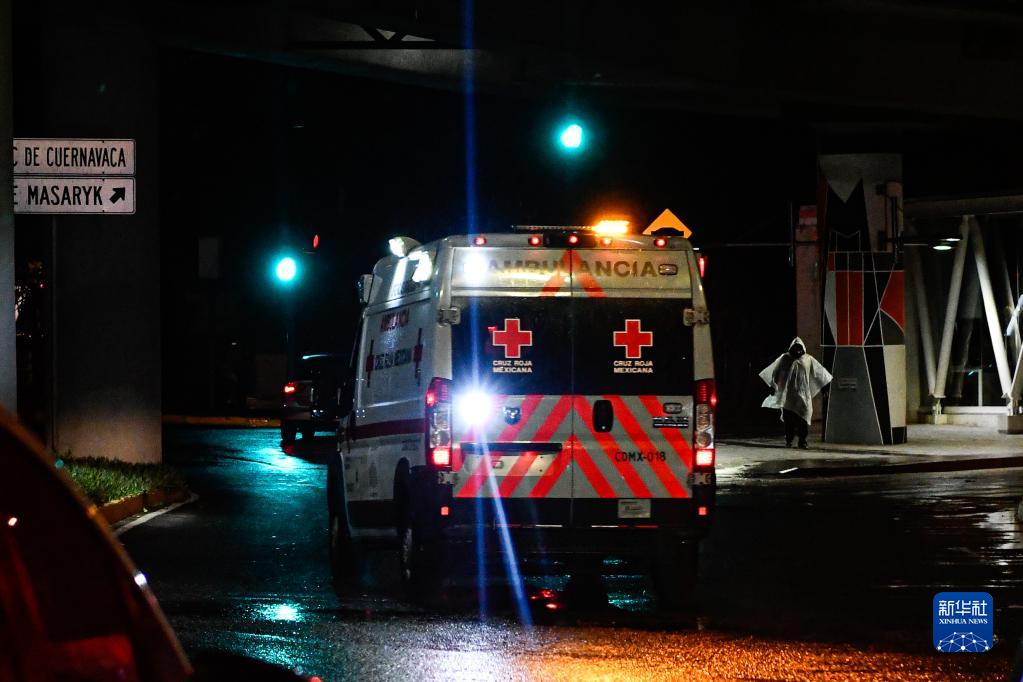 9月7日,在墨西哥首都墨西哥城,地震發(fā)生后一輛救護車(chē)行駛在道路上。