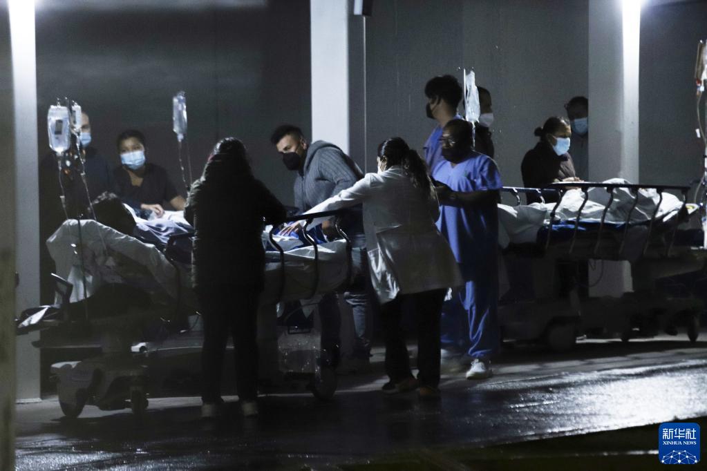 9月7日,在墨西哥首都墨西哥城,地震發(fā)生后一家醫院的工作人員將病人轉移到室外。