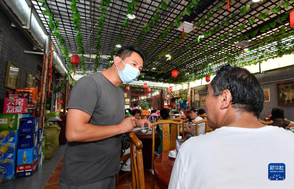 在天津市寶坻區黃莊鎮小辛碼頭村,李超(左)為客人點(diǎn)單(9月2日攝)。