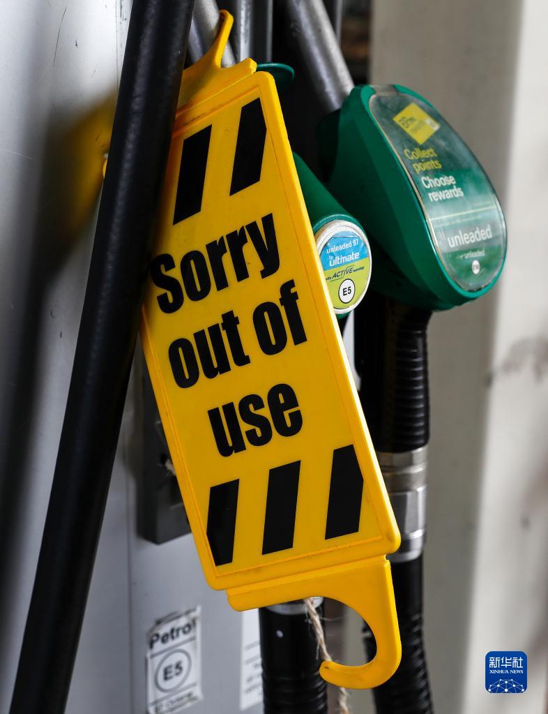 這是9月27日在英國倫敦一家加油站拍攝的暫停使用的油槍。新華社記者 韓巖 攝