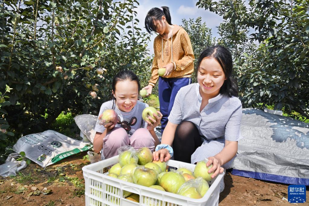 10月2日,游客在青島西海岸新區寶山鎮果園里采摘蘋(píng)果。