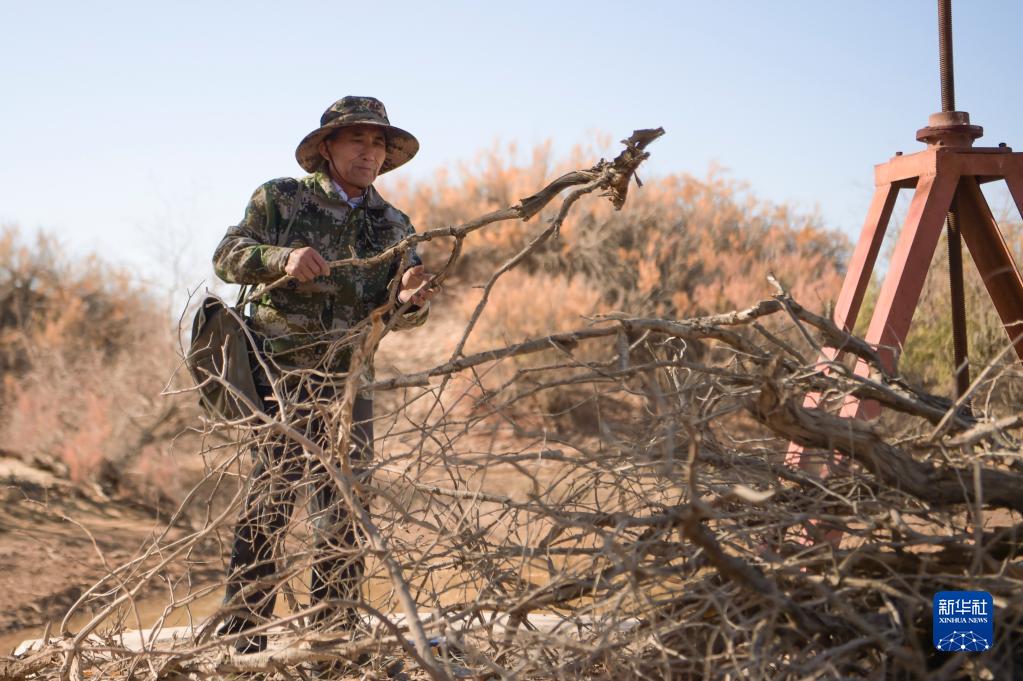 10月11日,護林員魏存廣在額濟納旗七道橋胡楊林區巡護。新華社記者 李志鵬 攝