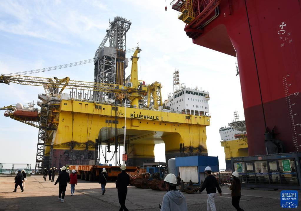 10月18日,參觀(guān)者在中集來(lái)福士海洋工程有限公司深水碼頭參觀(guān)“藍鯨1號”。