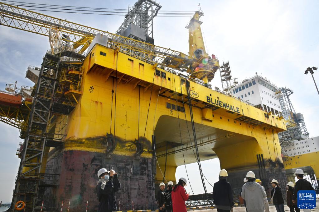 10月18日,參觀(guān)者在中集來(lái)福士海洋工程有限公司深水碼頭參觀(guān)。