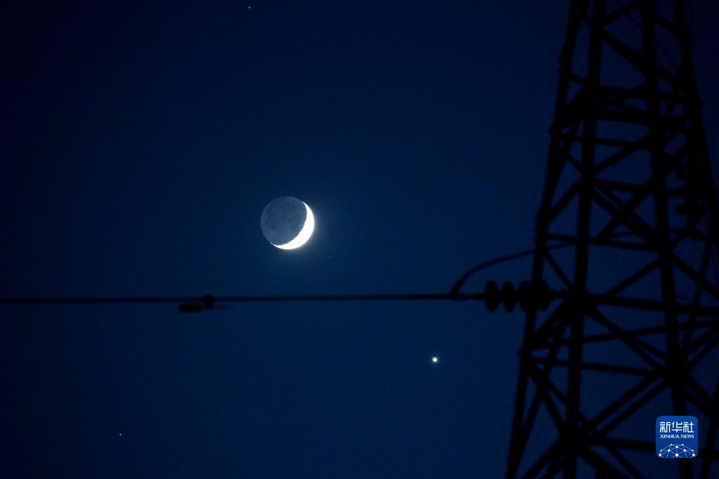11月8日傍晚在江西省九江市都昌縣拍攝的金星合月景觀(guān),金星和月球在天空相互呼應,格外醒目。