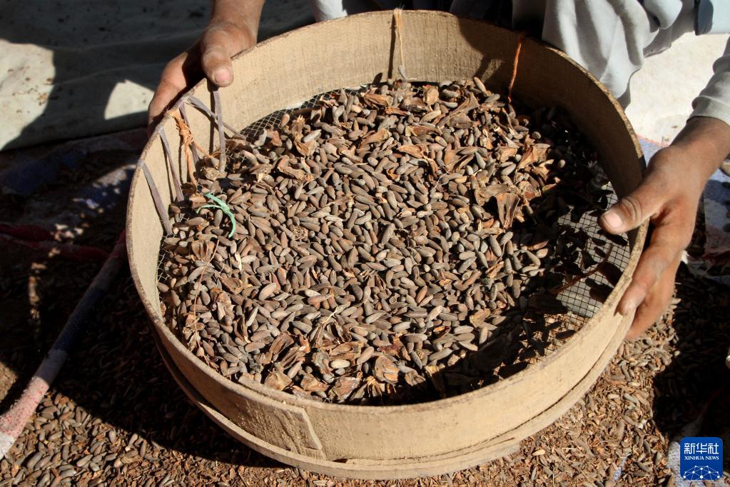這是11月12日在阿富汗米特拉姆拍攝的松子。