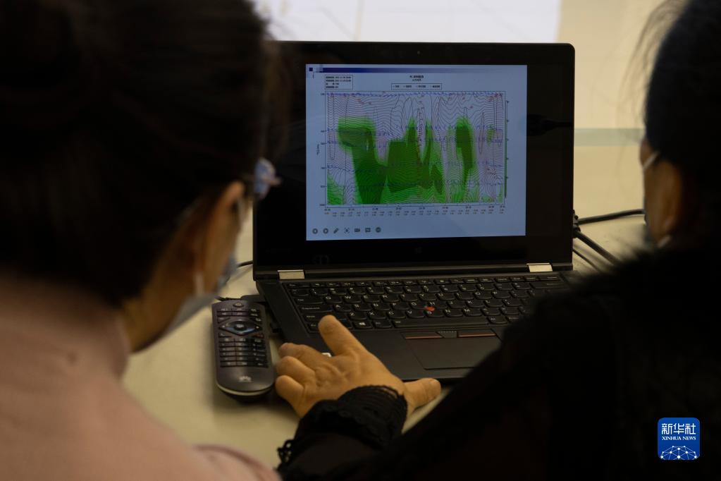 11月21日晚,在雞西市氣象局,工作人員在進(jìn)行天氣監測。