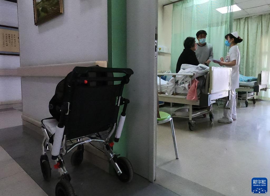 11月24日,在北京大學(xué)腫瘤醫院肝膽胰外一科病房,即將出院的沈建群(左)向護士了解出院手續。