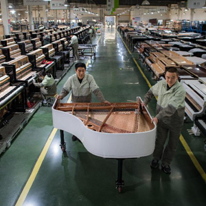鋼琴的生產(chǎn)是精細活。在這里, 2000多名工人緊張地忙碌著(zhù),切割、打磨、調律……在他們的組裝下,一架架鋼琴誕生了,并由此走向全世界。