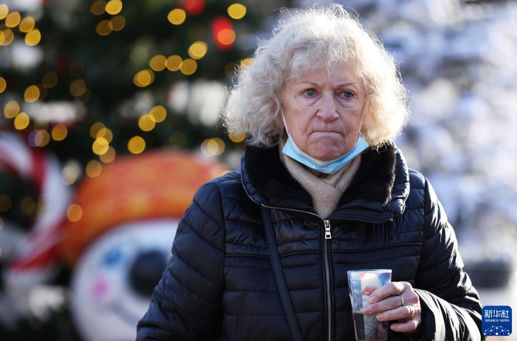 12月9日,一名女子在法國巴黎一家圣誕市場(chǎng)邊走邊喝熱紅酒。