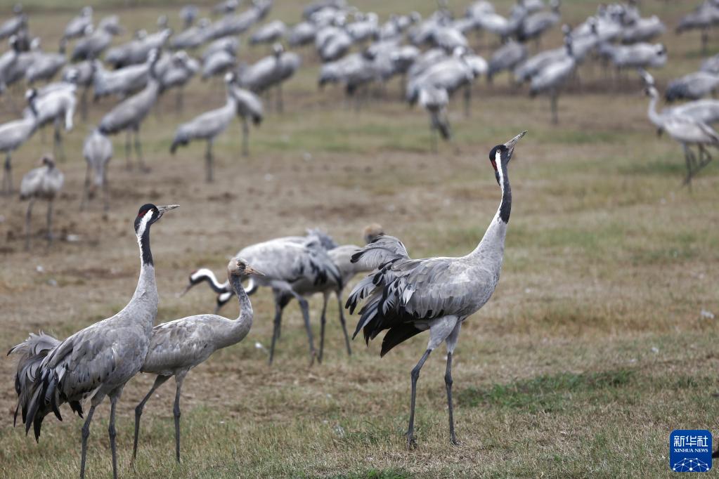 12月9日,一群灰鶴在以色列阿格蒙胡拉鳥(niǎo)類(lèi)和自然公園的濕地里休息。