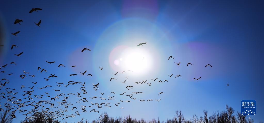 候鳥(niǎo)飛過(guò)唐嘎濕地(12月11日攝,手機照片)。