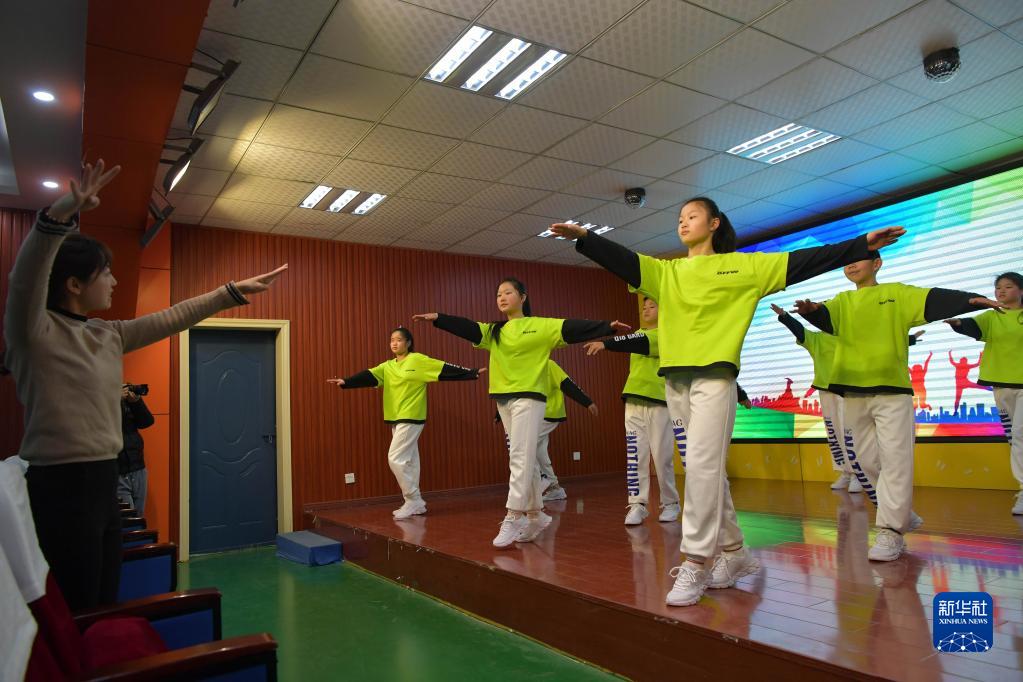 在江西省宜春市特殊教育學(xué)校,樊海艷(左一)指導聽(tīng)障班的學(xué)生們排舞(12月28日攝)。