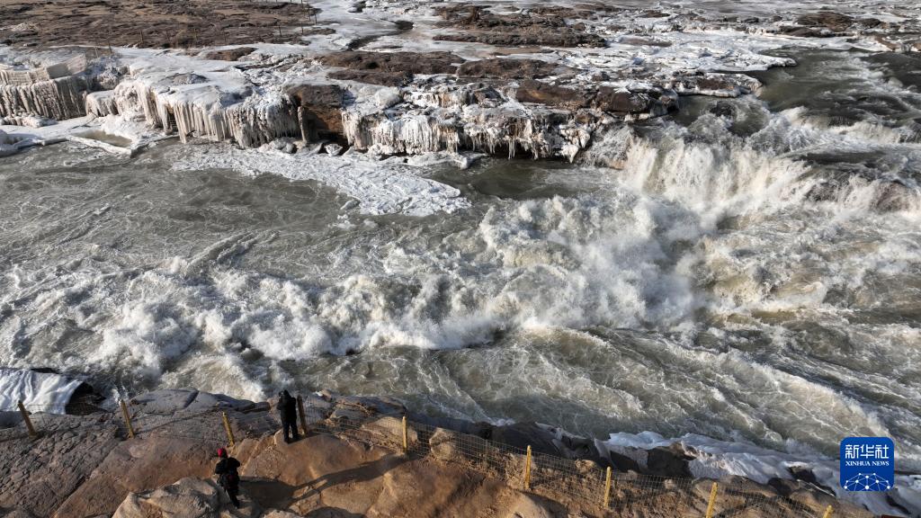 12月30日拍攝的冬日壺口瀑布(無(wú)人機拍攝)。
