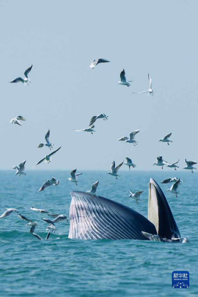 2021年1月15日,一頭布氏鯨在廣西潿洲島海域捕食。