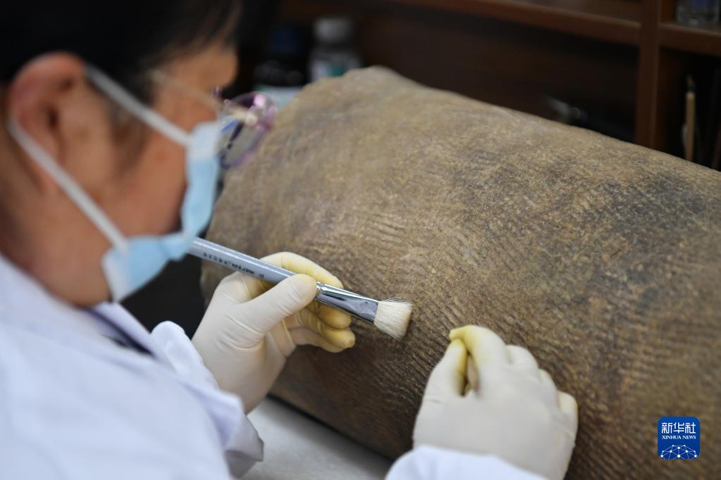 2021年12月16日,工作人員對江村大墓出土的文物進(jìn)行清理。江村大墓因位于西安市灞橋區江村而得名。經(jīng)過(guò)持續勘探及對大墓周邊部分外藏坑的搶救發(fā)掘,基本確認這座大墓為漢文帝陵墓。