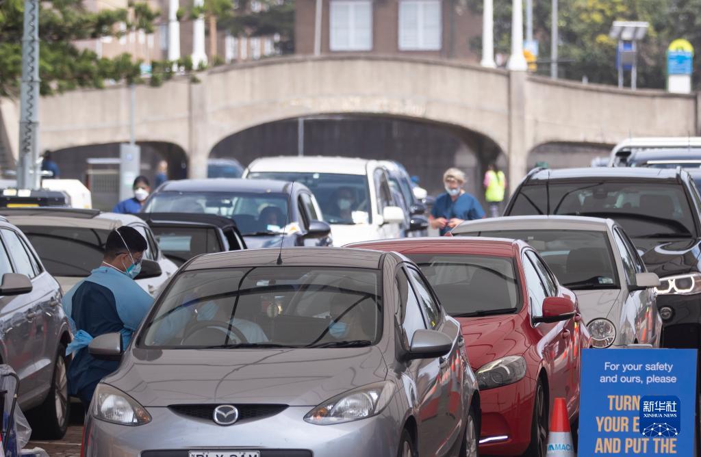 1月9日,車(chē)輛在澳大利亞悉尼一處新冠檢測點(diǎn)排隊。