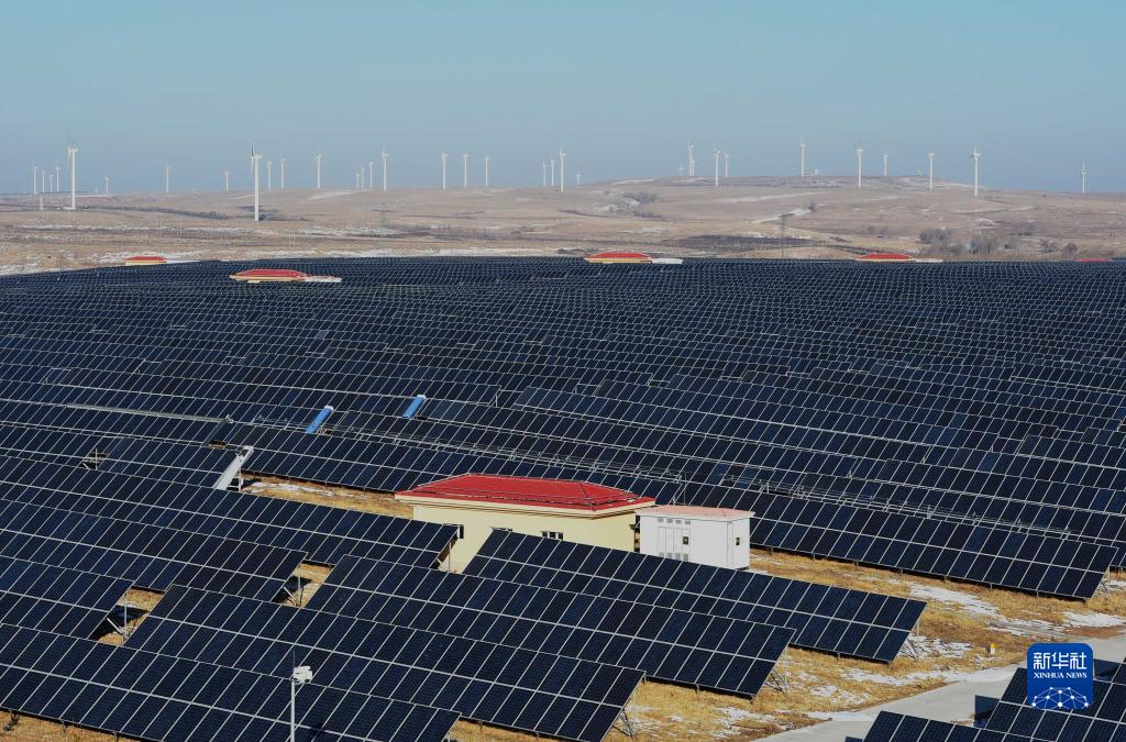 這是張家口壩上地區的國家風(fēng)光儲輸示范電站內的風(fēng)光互補發(fā)電場(chǎng)(2017年12月27日攝)。