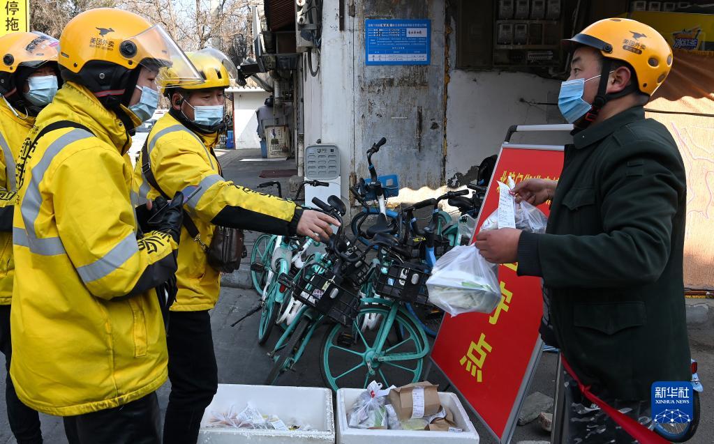 1月11日,外賣(mài)員在西安市蓮湖區北馬道巷取餐。