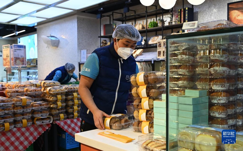 1月11日,西安市碑林區南稍門(mén)一家生鮮店的工作人員在準備商品。
