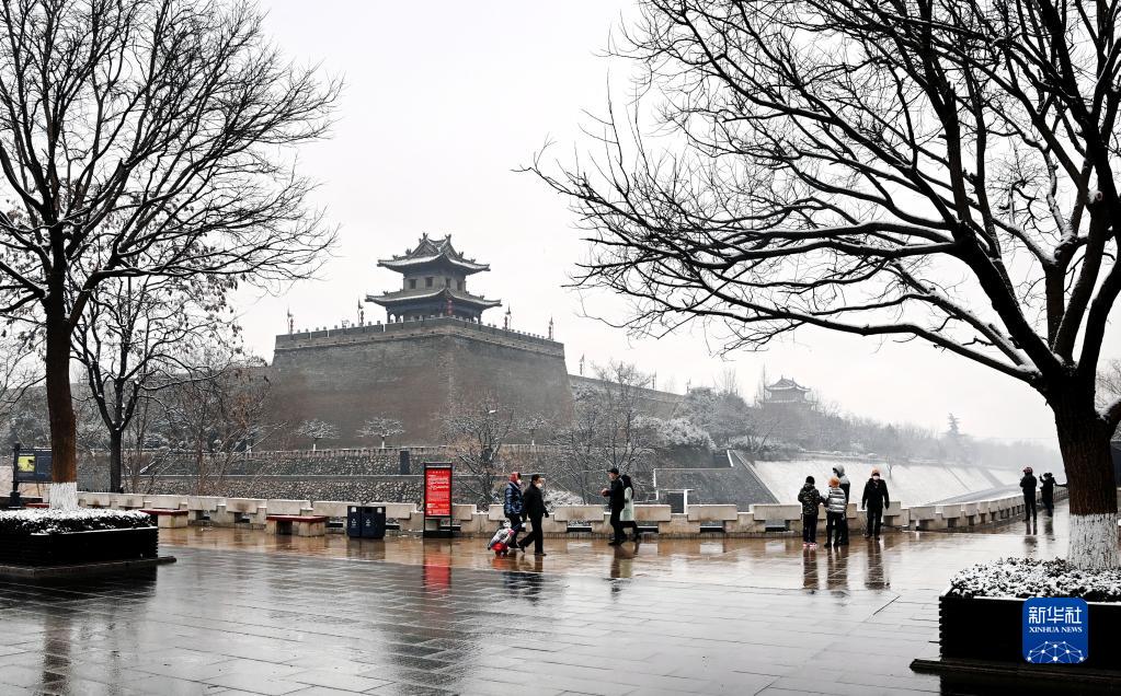 1月23日,市民在古城墻下休閑散步。