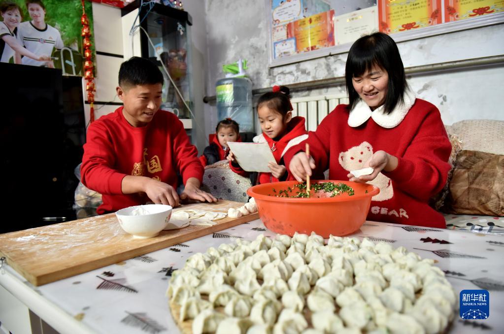 1月31日,在邢臺市南和區賈宋鎮北楊莊村,宋建飛和妻子在家中包餃子。