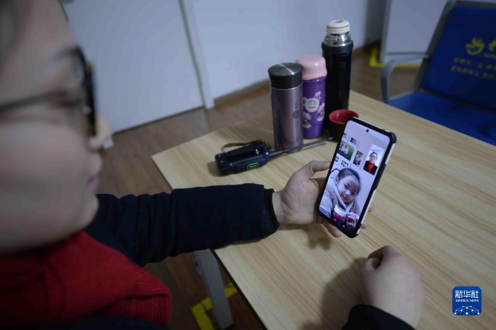 1月28日晚,寇莉在值班室利用接送車(chē)空檔時(shí)間與女兒視頻。