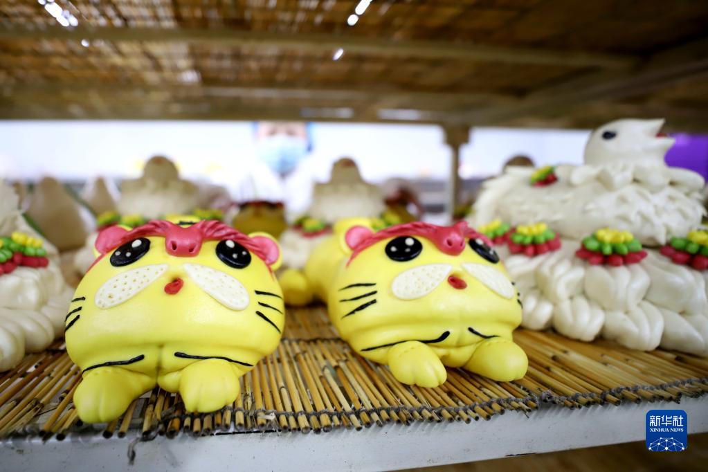 1月20日在山東省青島西海岸新區一家食品企業(yè)車(chē)間里拍攝的虎頭“年餑餑”。