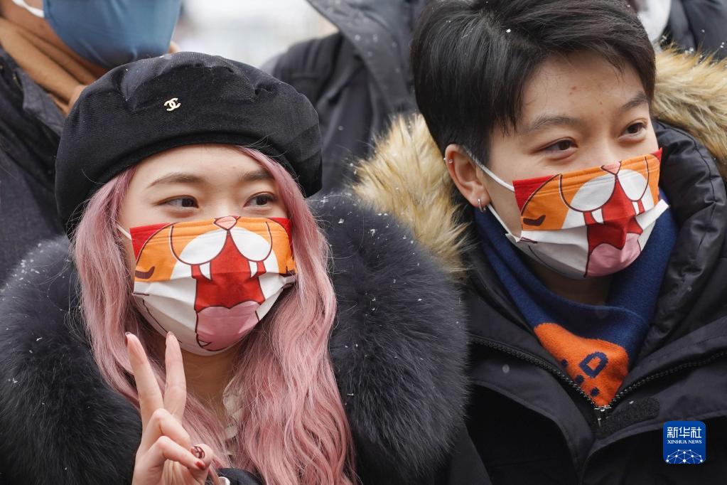 1月22日,游客戴著(zhù)老虎元素的口罩在北京環(huán)球度假區拍照留念。