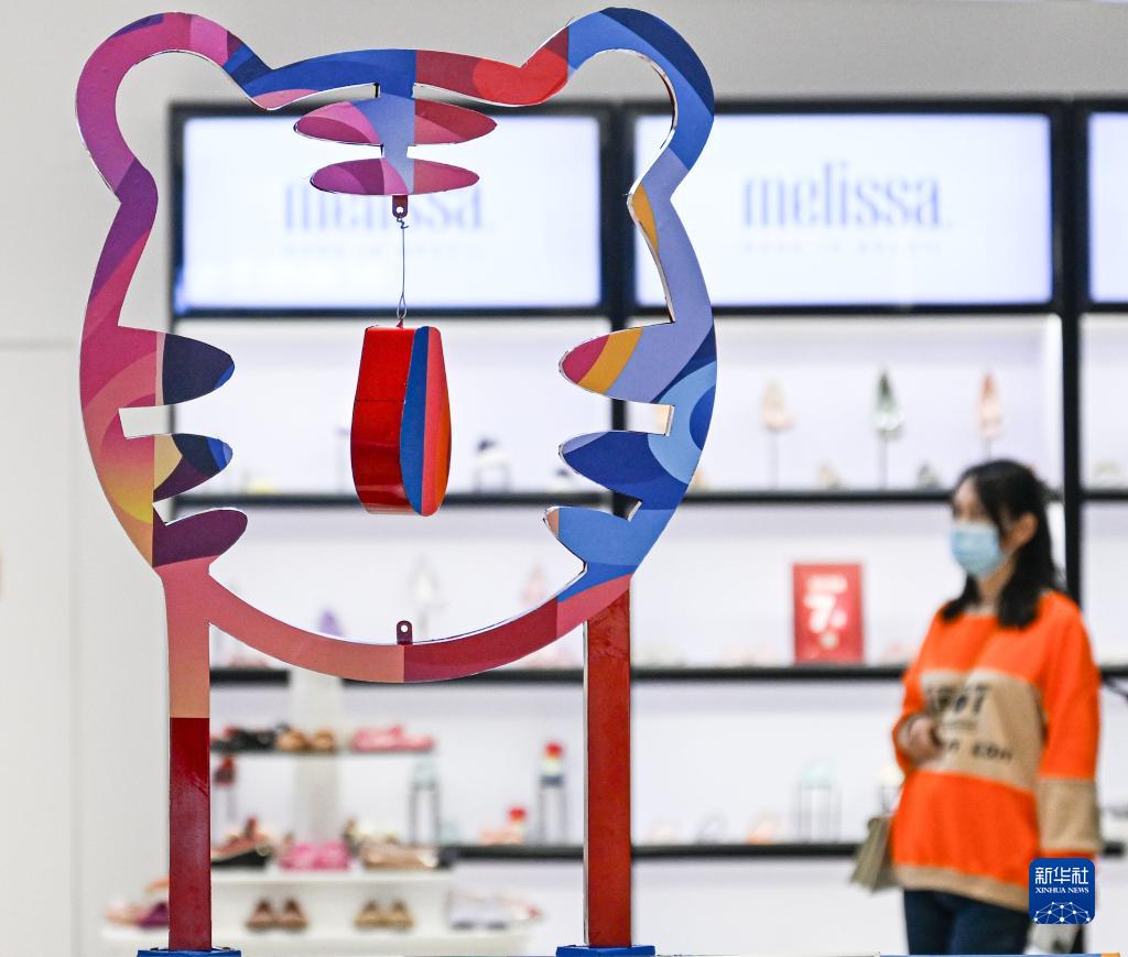 這是1月14日在??谌赵聫V場(chǎng)免稅店拍攝的一處虎頭造型的裝飾設計。