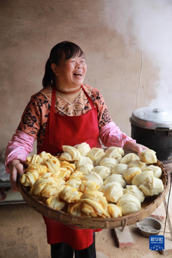 在蘭州市七里河區西果園鎮袁家灣村,村民柴玉紅在家中捧著(zhù)剛蒸好的饃饃(1月26日攝)。