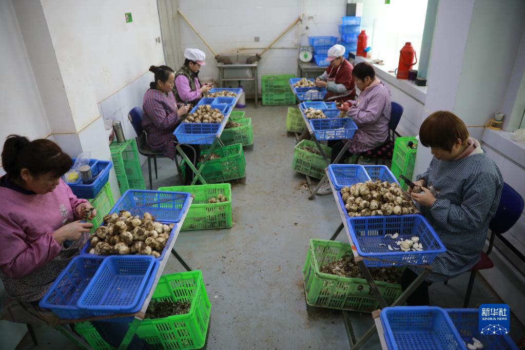 在蘭州市七里河區西果園鎮袁家灣村百合加工車(chē)間,村民在分揀百合(1月26日攝)。