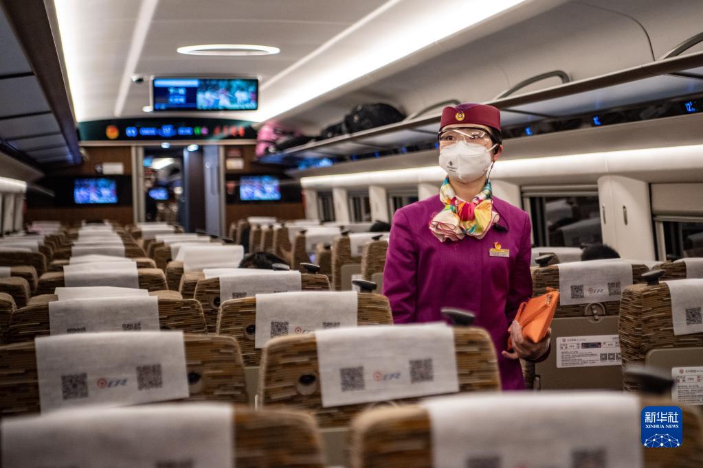 林夢(mèng)凡在成渝高鐵智能復興號“共青團號”列車(chē)上工作(1月27日攝)。