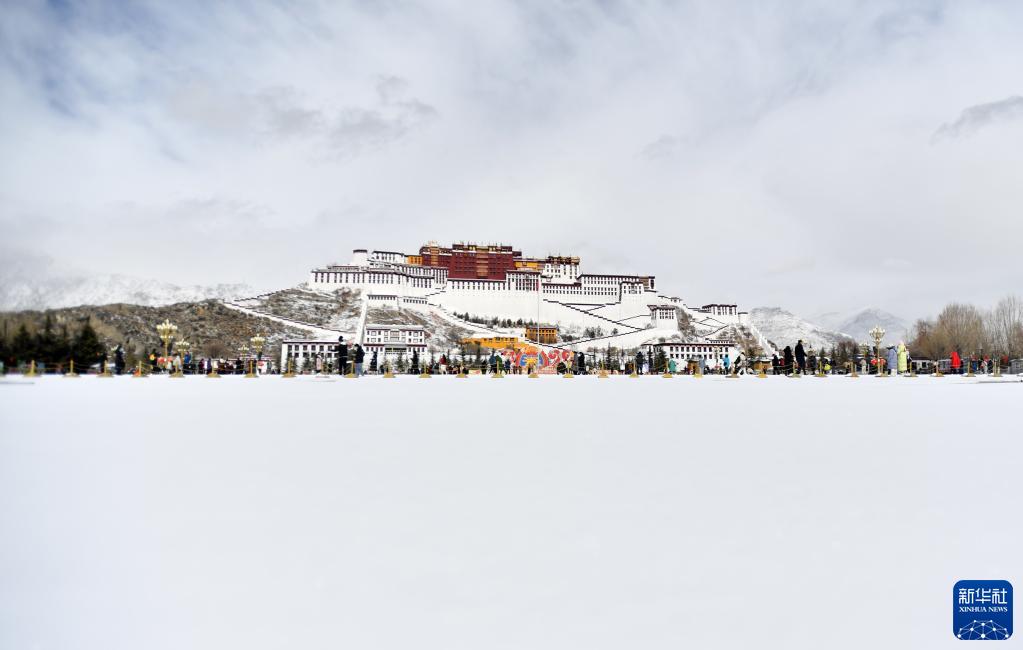 2月5日拍攝的雪后布達拉宮廣場(chǎng)。