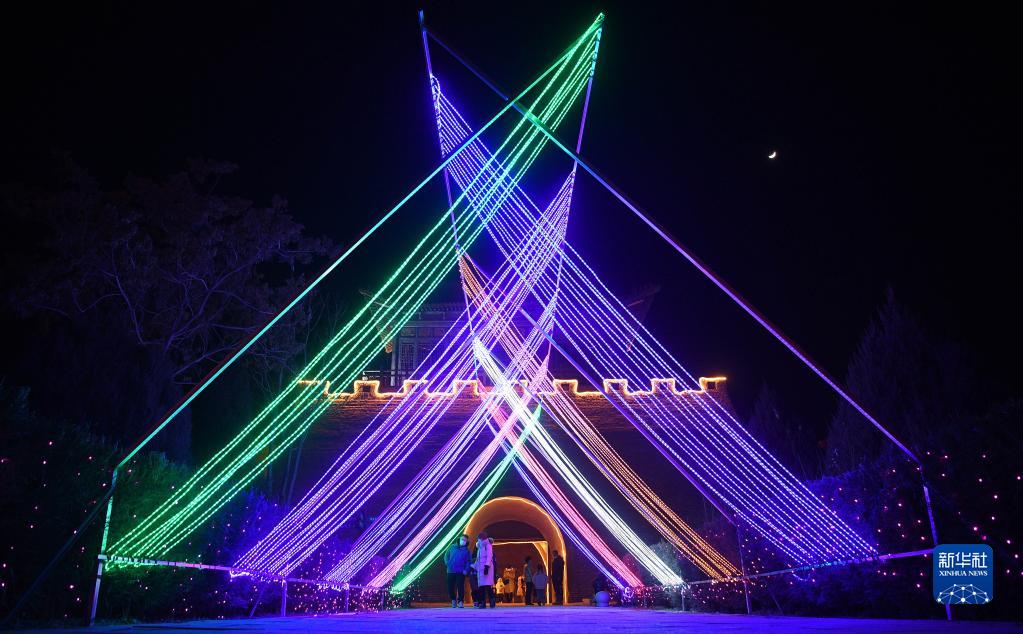 游客在銀川市黃河橫城旅游度假區觀(guān)看花燈展(2月5日攝)。