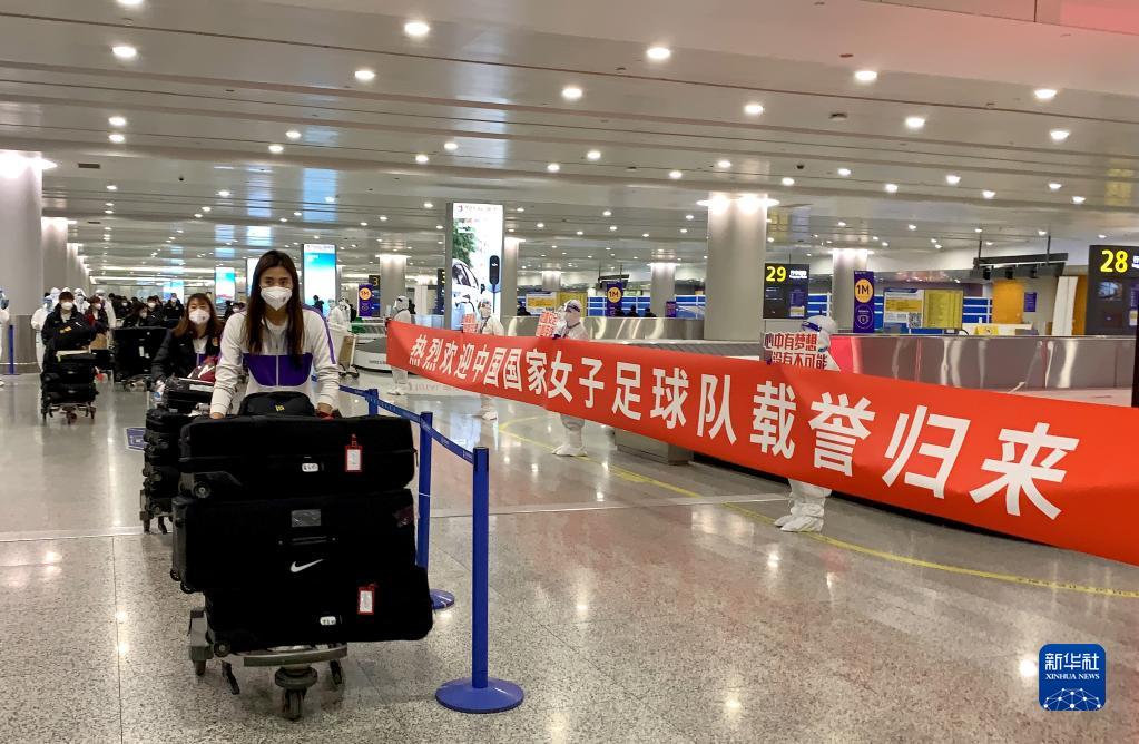 2月7日,中國女足隊員抵達上海浦東國際機場(chǎng)。