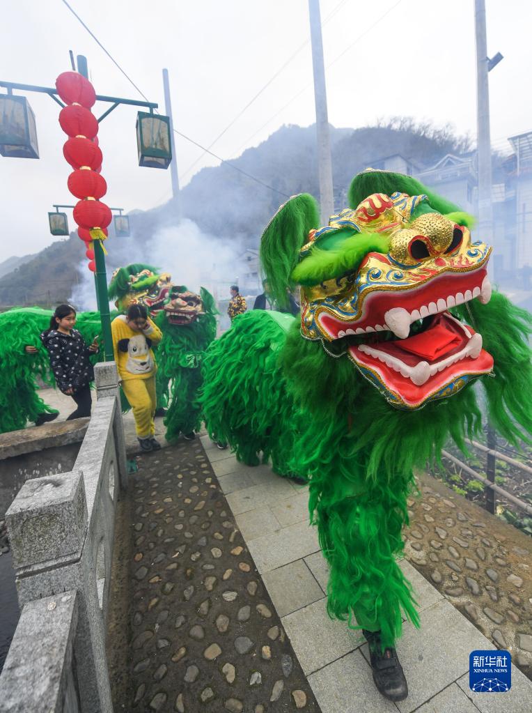 2月15日,綠獅花燈隊在浙江省杭州市淳安縣屏門(mén)鄉齊坑村表演。在齊坑村舉行的鬧元宵活動(dòng)上,杭州市級非遺項目“齊坑綠獅”和花燈環(huán)游等表演讓游客和村民感受傳統文化的魅力。