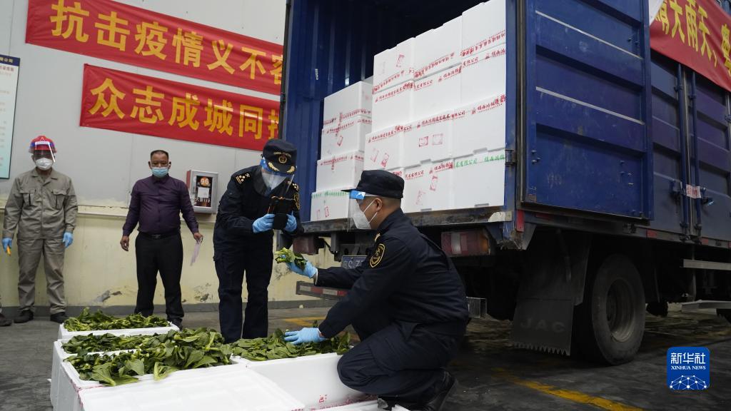 2月18日,番禺海關(guān)關(guān)員在檢查供港蔬菜。新華社發(fā)