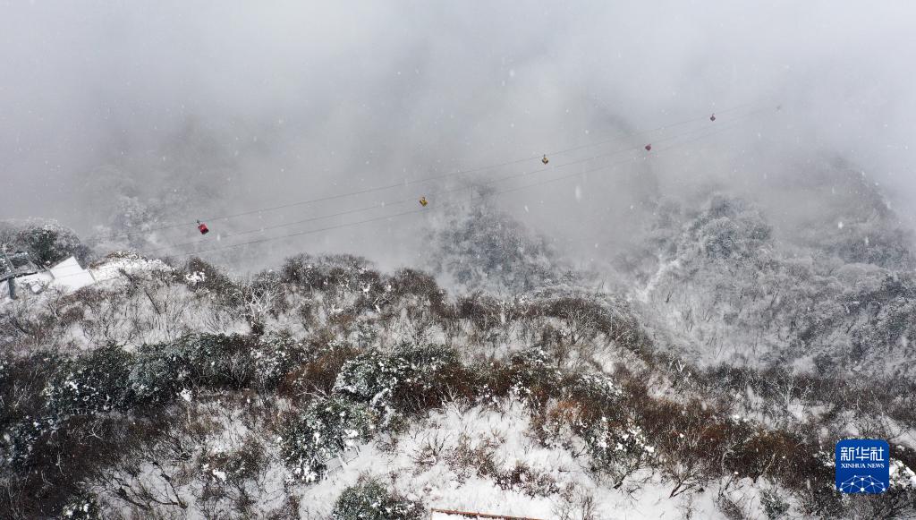 2月20日,游客乘坐纜車(chē)在龍頭山景區游覽(無(wú)人機照片)。