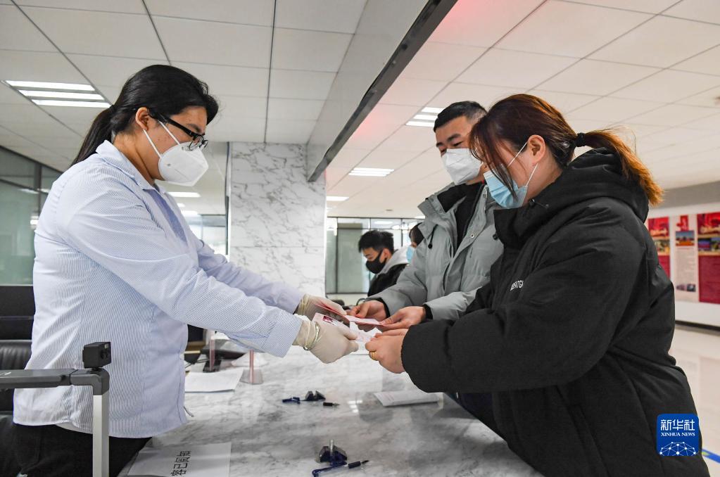 2月22日,內蒙古呼和浩特市回民區市民服務(wù)中心工作人員為新人頒發(fā)結婚證。