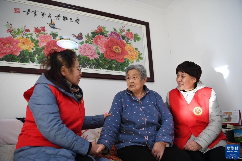 河北省承德市濱河社區志愿者到獨居老人張郁馥家中走訪(fǎng)(2021年12月16日攝)。