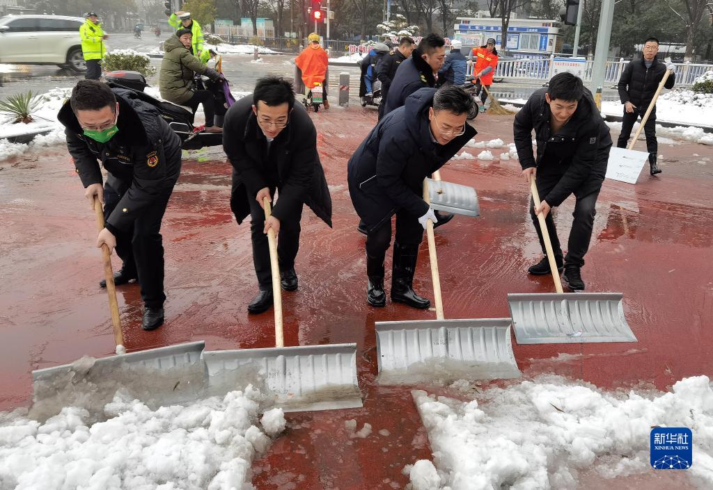 近日,受冷空氣影響,江西南昌迎來(lái)降雪天氣。南昌交警、城管等部門(mén)的工作人員及社區志愿者迅速行動(dòng),掃雪除冰,守護群眾出行安全。