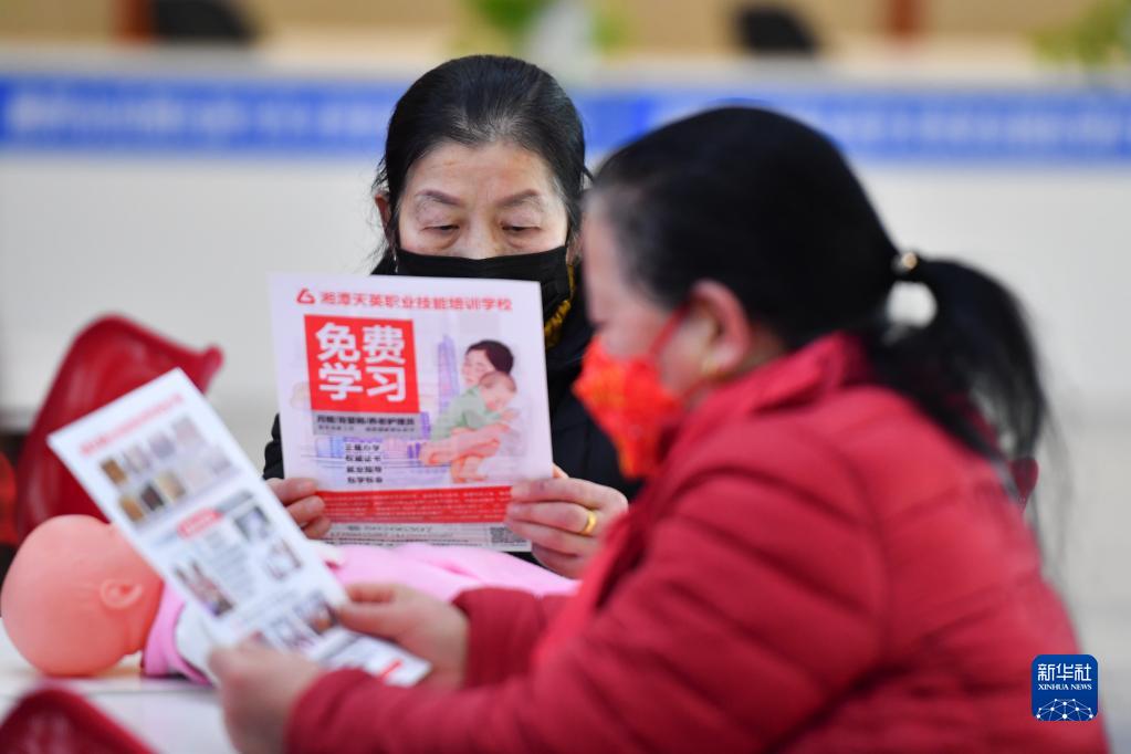 2月24日,在湘潭市雨湖區人力資源和社會(huì )保障服務(wù)中心,學(xué)員在育嬰員培訓班上學(xué)習育嬰知識。