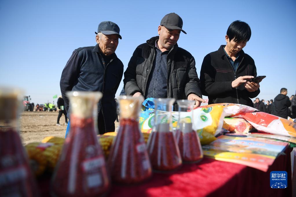 2月24日,農戶(hù)在春播生產(chǎn)現場(chǎng)會(huì )上了解種子情況。