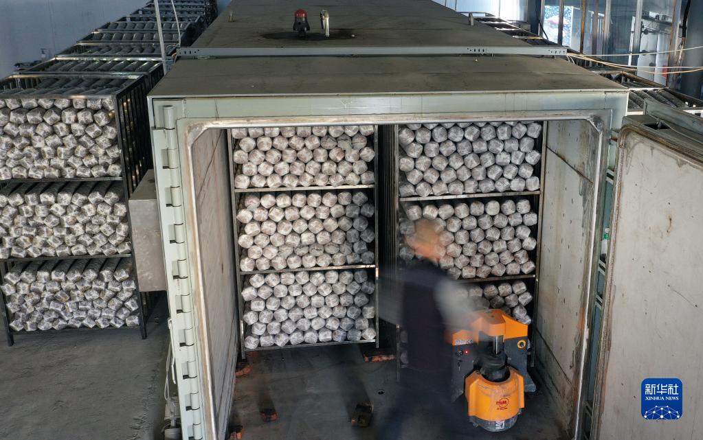2月24日,留壩縣武關(guān)驛鎮一家農業(yè)科技公司的員工在搬運食用菌包。