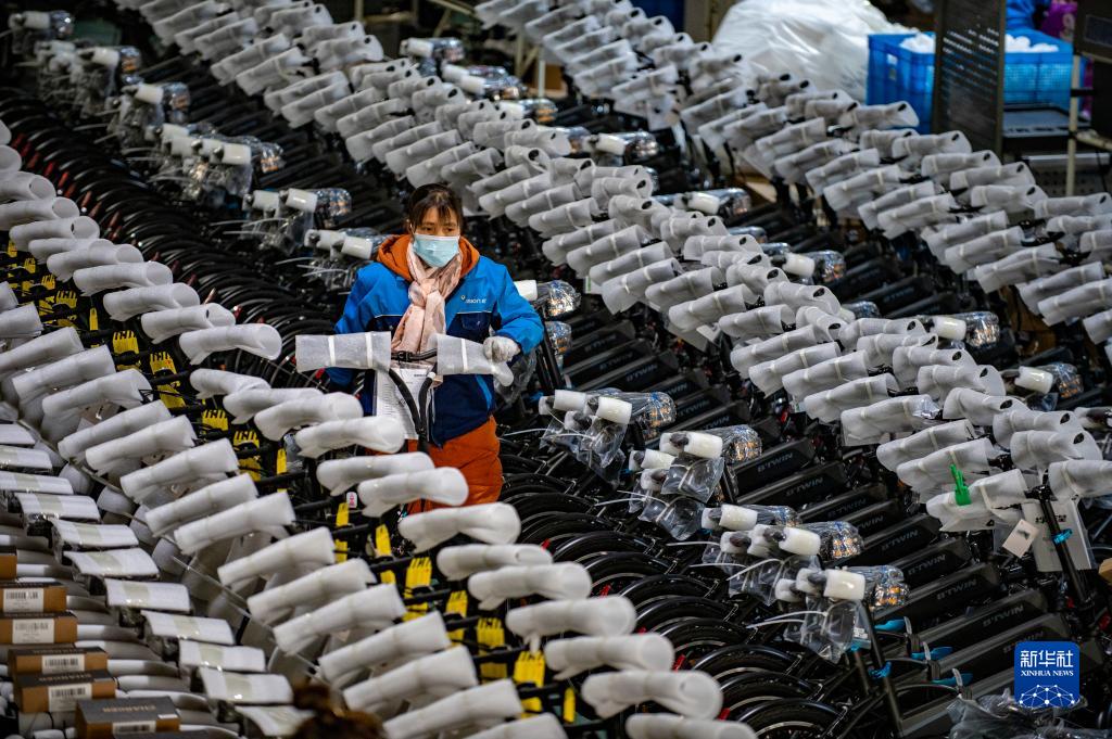 2月23日,工人在金華市金東區一家電動(dòng)自行車(chē)生產(chǎn)企業(yè)總裝車(chē)間內進(jìn)行整車(chē)包裝前的準備。