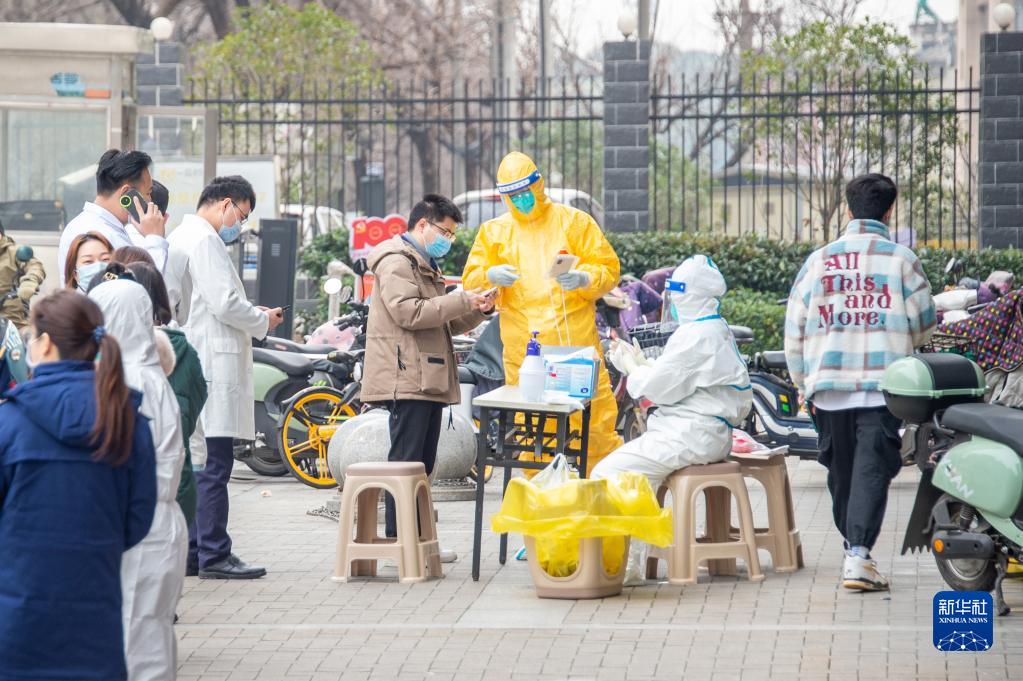 2月22日,市民在武漢市圓夢(mèng)家園社區核酸檢測點(diǎn)進(jìn)行核酸檢測。
