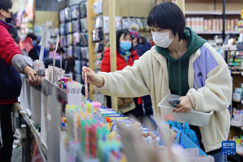 2月26日,在河北省秦皇島市海港區一家文具店內,學(xué)生在挑選文具。
